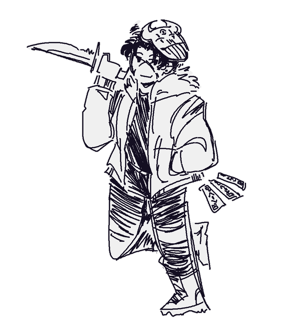 born and raised as a follower of ZIR. after being caught selling ANGELTECH without a permit, they were marked for judgement, which they promptly escaped. they have been out on the run and surviving as an arms-dealer ever since.