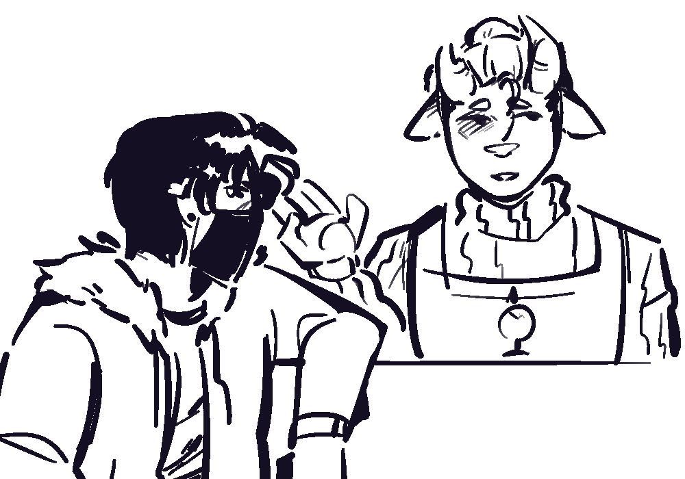 He stares at you as he tries to gauge how serious you are. There's a hint of fear and doubt at your rather meager appearance. You get it. If you were extorted for years by a bunch of big sharp toothed oafs you'd be doubting any schmuck walking in saying they're the next hero in town.