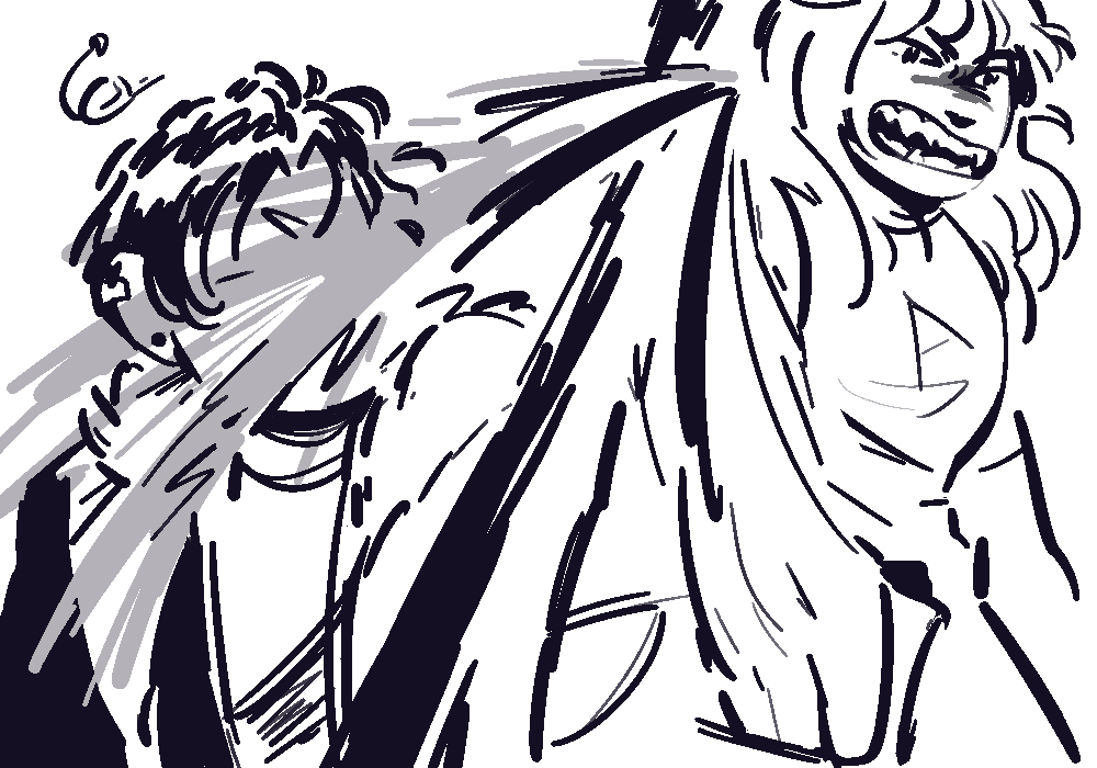 You press on, a manic edge to your voice, "Hah, you know, I try not to think too hard about this sorta thing. With your brother, the city here, and all its broken people. The way that it's come together, it's like I just appear in people's lives suddenly, make them worse with some sort of deal, then fight an angel and vanish. Talking about it like this... it kinda sounds like I'm some sort of demon, doesn't it?"