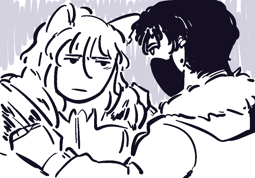 You remove your jacket from your INVENTORY and gesture for her to lean forward. She catches your meaning quick and reluctantly obeys as you put it over her shoulders. Eiko's pupils are as black as pits when the scent envelops her.